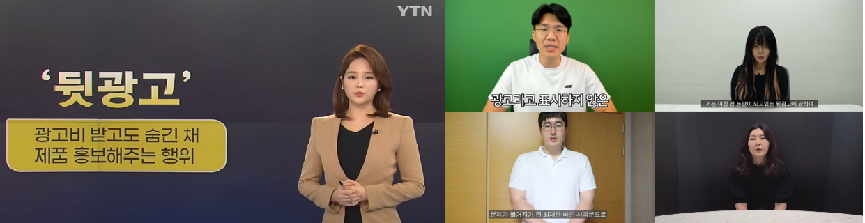 그중 대표적인 것 중 하나는 유투버 보겸, 쯔양, 앰브로, 한혜연(이 분들 말고 많습니다. 예시이니 양해 바랍니다.) 등등 의 광고 게재 후 공지하지 않아 '뒷 광고'논란으로 방송을 쉬거나 접은 '뒷광고' 사태입니다.